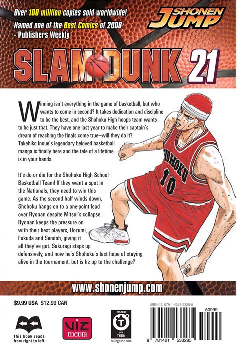 The twenty first volume of the Slam Dunk manga series. Exhausted by the physical exertion of the game after a long break from basketball, ... Volume 21; Volume Information Release Date: November 4, 1994 April 3, 2012 : ISBN: 978-4-08-871841-5 978-1-4215-3328-5 : Author: Takehiko Inoue: Genre: Shōnen and Sports Volume Guide: